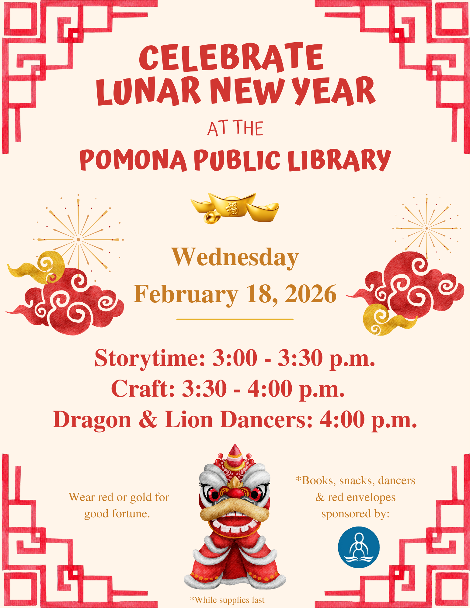Celebrate the Lunar year at the Pomona Public library! https://www.pomonaca.gov/government/departments/library Source: City of Pomona Published February 6, 2026 Print