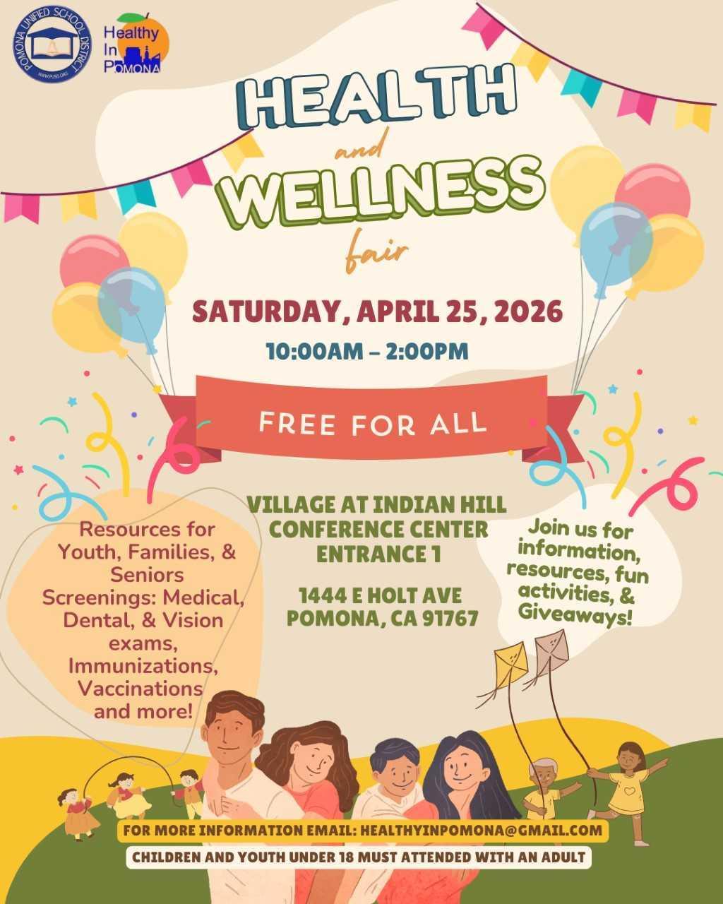 Health & Wellness Fair - Sponsored by PUSD & Healthy in Pomona Attached Files HiP Fair March 2026_English.pdf HiP Fair March 2026_Simplified Mandarin.pdf HiP Fair March 2026_Spanish.pdf Published March 4, 2026 Print